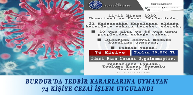 BURDUR’DA TEDBİR KARARLARINA UYMAYAN 74 KİŞİYE CEZAİ İŞLEM UYGULANDI