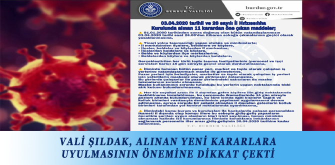 VALİ ŞILDAK, ALINAN YENİ KARARLARA UYULMASININ ÖNEMİNE DİKKAT ÇEKTİ