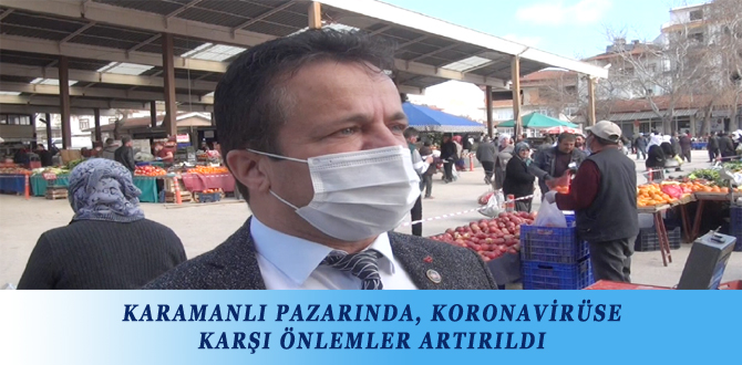 KARAMANLI PAZARINDA, KORONAVİRÜSE KARŞI ÖNLEMLER ARTIRILDI