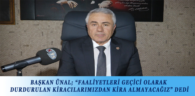 BAŞKAN ÜNAL; “FAALİYETLERİ GEÇİCİ OLARAK DURDURULAN KİRACILARIMIZDAN KİRA ALMAYACAĞIZ” DEDİ