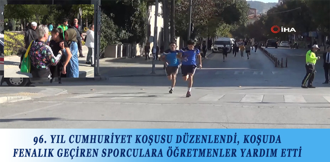 96. YIL CUMHURİYET KOŞUSU DÜZENLENDİ, KOŞUDA FENALIK GEÇİREN SPORCULARA ÖĞRETMENLER YARDIM ETTİ