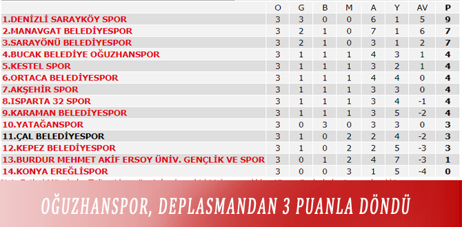 Bölgesel Amatör Ligde 3. Hafta maçları Pazar günü oynandı. Bucak Belediyesi Oğuzhanspor bu hafta deplasmanda Çal Belediyespor ile karşılaştı. Denizli Vali Yusuf Ziya Göksu Stadında oynanan karşılaşmad...