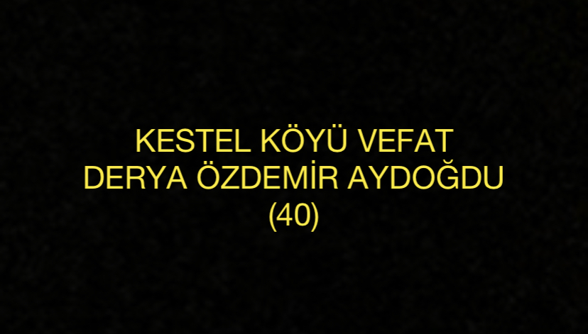 Kestel köyünden, Mehmet Özdemir kızı, Ferudun Aydoğdu eşi, *Derya Özdemir Aydoğdu(40)* vefat etmiştir. Cenaze namazı saat 11’de Kestel köyünde kılınıp defnedilecektir. Eşi Ferudun Aydoğdu 05412166534...