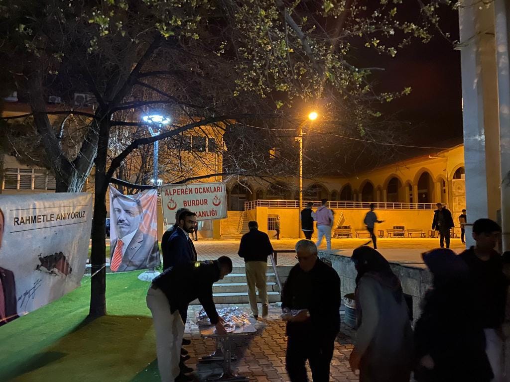 Alperen Ocakları Burdur İl Başkanlığı tarafından Muhsin Yazıcıoğlu’nun Şehadetinin 14. senesinde Ulu Camii’de helva dağıtımı yapıldı. Konuyla ilgili Alperen Ocakları Burdur İl Başkanlığından yapılan açıklamada; “Alperen Ocakları Burdur İl Başkanlığı olarak Şehit Liderimiz Muhsin Başkanımızın Şehadetinin 14.sene-i devriyesinde Ulu Camii’ de cemaatimize helva hayrımız yapılmıştır. Emeği geçenlerden Allah razı olsun.