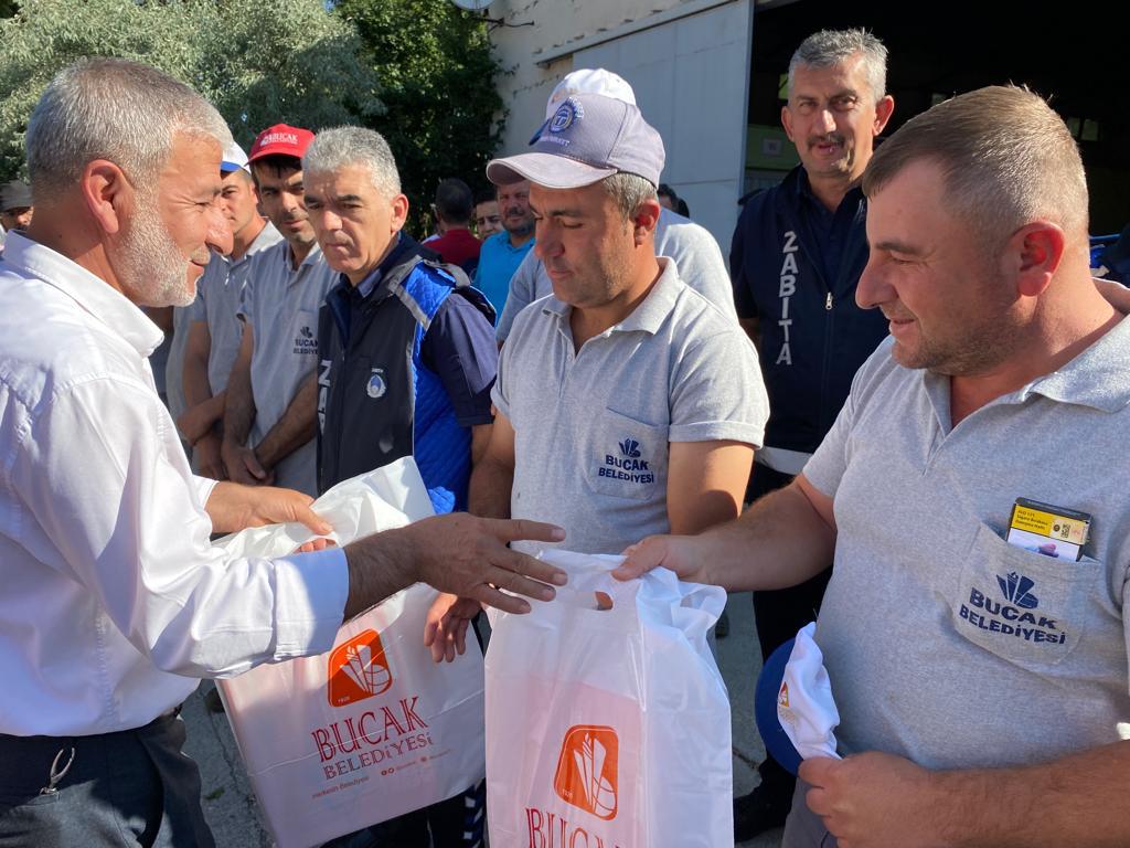 Belediye personeli ile güzel hizmetlere imza attıklarını kaydeden Başkan Emrullah Ünal, personeline hitaben yaptığı konuşmada “Bucak’ımıza yapmış olduğumuz her hizmette sizlerin emeği var. Emekleriniz için sizlere teşekkür ediyorum. Hepimiz devletimiz, milletimiz ve ilçemiz Bucak için çalışıyoruz. Burdur’un marka ilçesi Bucak’ımıza hep birlikte hizmet ediyoruz. İlçemizin Marka ilçe olmasında şüphesiz ki gece gündüz çalışan, halkımıza hizmet eden sizlerin alın teri var. Allah birliğimizi, dirliğimizi aramızdaki bu muhabbetti bozmasın. Biz hep daha iyiyi, daha güzeli nasıl yapabiliriz diye bir çaba içindeyiz. Hepinize göstermiş olduğunuz özverili çalışmalarınızdan dolayı tekrardan teşekkür ediyorum. İnşallah bundan sonra da, daha güzel çalışmalara yine hep birlikte imza atacağız. Ben her birinizin, ailelerinizin ve sevdiklerinizin ayrı ayrı Kurban Bayramını tebrik ediyor, nice güzel bayramlar geçirmelerini diliyorum” diye konuştu.