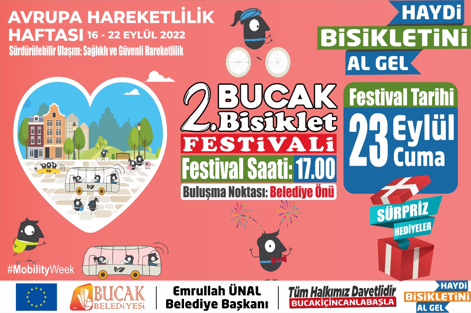 2. Bucak Bisiklet Festivali, 23 Eylül Cuma günü saat 17:00’da Bucak Belediyesi önünde başlıyor. Saat 17.00’da yapılacak olan Bisiklet Festivali, Cumhuriyet Meydanından start alacak. Bisiklet sürücüleri Belediye önünden hareket ederek, Gazi Caddesinden, Asfalt Şantiyesinden dönüş yapılarak Gazi Caddesinden Belediye önüne gelinecek. Bisiklet turuna katılan vatandaşlar arasında yapılan kura çekiminde vatandaşlara bisiklet kask seti, sürpriz hediyeler verilecek ve ikramlar gerçekleştirilecek.