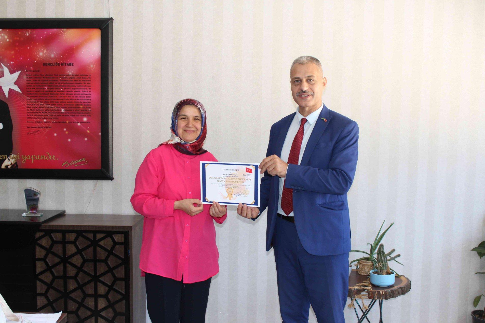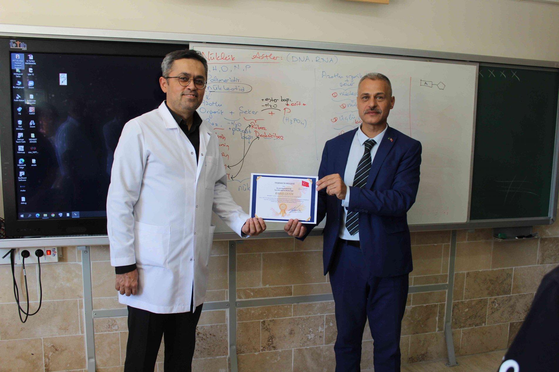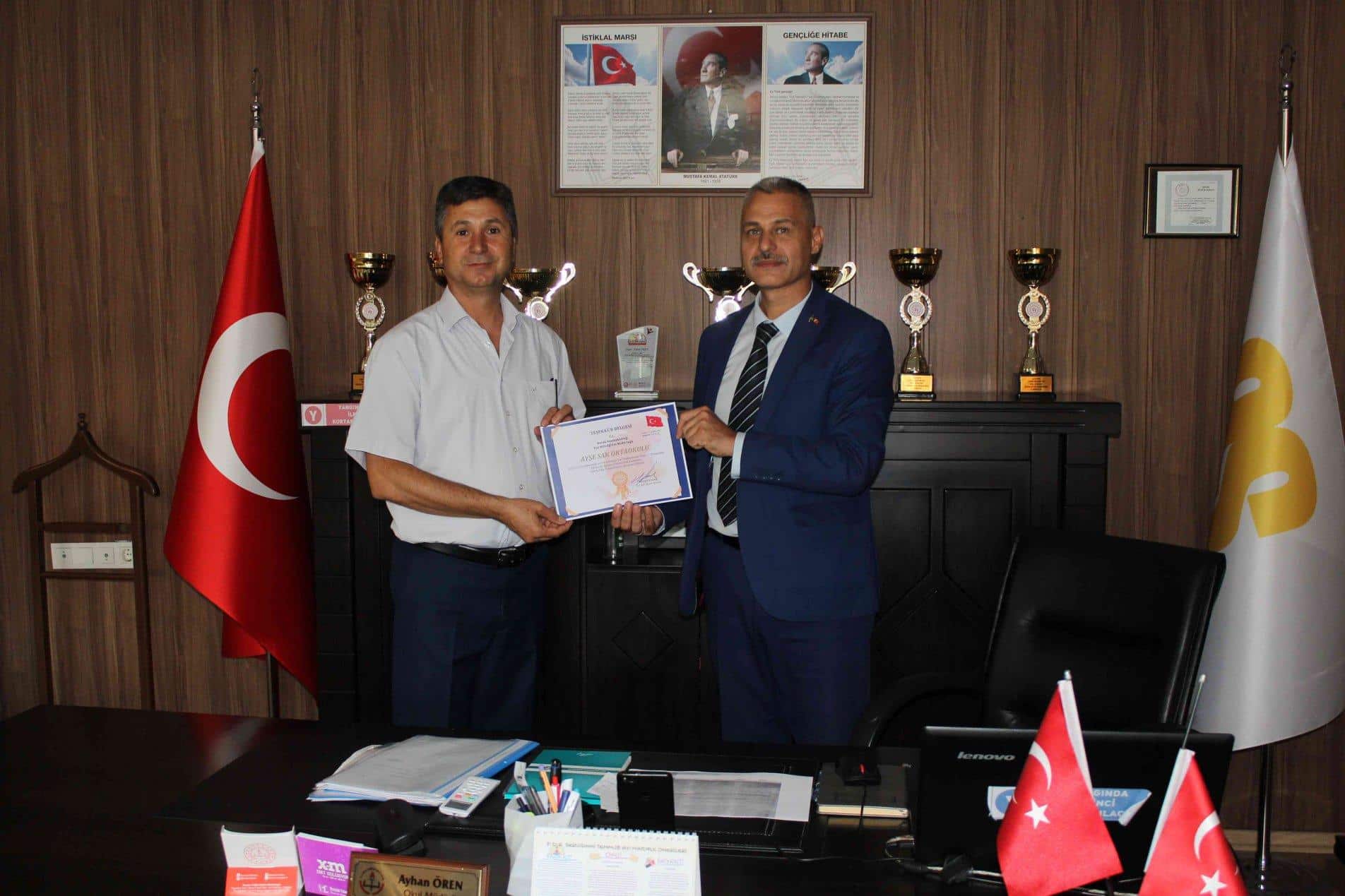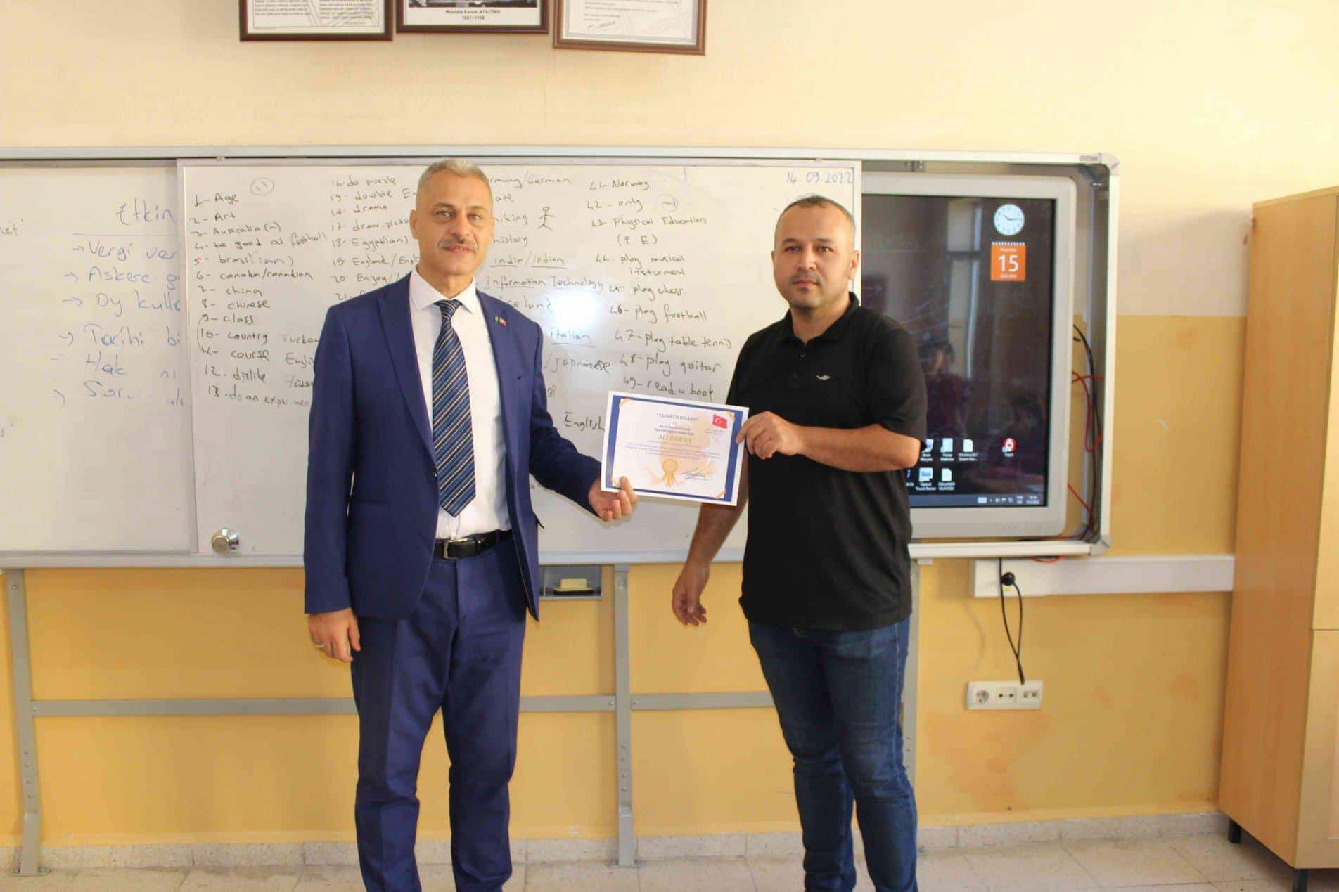 Ziyaret sırasında öğretmen ve öğrencilerle hoş sohbet gerçekleştiren İlçe Milli Eğitim Müdürü Neşet YAZAR, “İnsanın; inandığında, azimle çalıştığında neler yapabileceğini öğretmenlerimiz bize gösterdi. Biz de bu büyük başarıya karşı kayıtsız kalamazdık. Kadrolu ya da ücretli ayrımı gözetmeksizin her bir öğretmenimiz bizim için çok kıymetlidir. Çünkü onlar geleceğimizin teminatı olan çocuklarımızı yetiştiren, fedakar öğretmenlerimizdir. Vatanını seven, bayrağına sahip çıkan, ahlaklı, milletimizin bekası için çalışan nesiller yetiştirmek için kendinden ödün veren, uykusunu, sosyal hayatını kısıtlayan, gerektiğinde ailesine ayırdığı vaktin daha fazlasını onlara ayıran öğretmenlerimizdir. Belge alan okullarımızı ve öğretmenlerimizi canı gönülden tebrik ediyor, hepsine bu kutsal görevde başarılar diliyorum.”