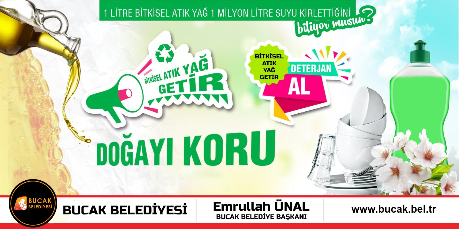Bucak Belediyesi çevreye zarar veren bitkisel atık yağların geri kazanımına katkı sağlamak amacıyla “5 Litre Bitkisel Atık Yağ Getirene 1 Litre Bulaşık Deterjanı” Kampanyasını devam ettiriyor. Çevreye duyarlı projeler üreten ve uygulayan Bucak Belediyesi bitkisel atık yağları bulaşık deterjanı ile değiştirme kampanyasını sürdürüyor. Bucak Belediyesi sıfır atık projesi kapsamında Habitat geri dönüşüm firması ile başlattığı “5 Litre Bitkisel Atık Yağ Getirene 1 Litre Bulaşık Deterjanı” kampanyasıyla vatandaşlar arasında geri dönüşüm bilinci oluşturmayı; çevreye ve insan sağlığına zarar veren yağları geri kazanmayı hedefliyor. Kampanya hakkında açıklama yapan Belediye Başkanı Emrullah Ünal “Bitkisel atık yağlar çevre ve insanlar için büyük tehlike arz ediyor. Evsel atık su kirliliğinin yüzde 25’ini oluşturan atık yağlar su giderlerinde ve kanalizasyonlarda birikerek boruların daralmalarına neden olurken aynı zamanda su toplama sistemlerinin de tıkanmasına yol açmaktadır. Sadece 1 litresi 1 milyon litre içme suyunu kirletmekte olduğu bilinen bitkisel atık yağların çevreye ve insan sağlığına etkilerini azaltmayı amaçlıyoruz. İlçemizde Sıfır atık diyerek yürütmekte olduğumuz proje kapsamında bu güne kadar yaklaşık 3000 litre bitkisel atık yağ toplanmış olup, 3 milyar litre suyun kirlenmesi önlenmiştir. Tüm vatandaşlarımızdan kampanyamıza destek olarak evde ve işyerlerinde kullanılan atık yağlarını biriktirerek, Belediyemize getirmelerini veya atık yağ toplama kutularına bırakmalarını istiyoruz.” dedi.