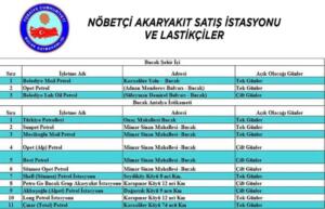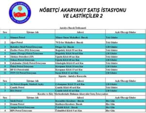Hafta sonları 10:00 – 20:00 saatleri dışında uygulanacak sokağa çıkma kısıtlaması süresince hizmet verecek Petrol – Otogaz İstasyonları, Yol kenarı ayeme içme yerleri Nöbet Listesi