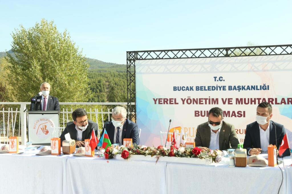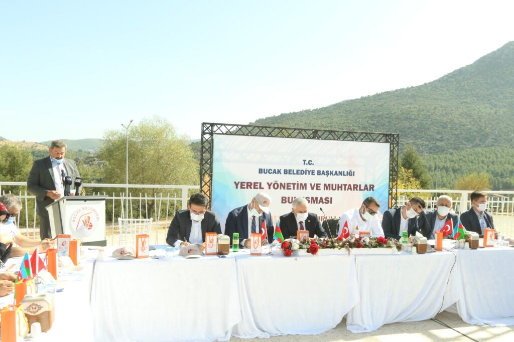 Bucak Merkez Mahalle Muhtarları toplantısı, Bucak Oğuzhan Kent Ormanı’nda yapıldı. Toplantıya AK Parti Burdur Milletvekilleri Bayram Özçelik ve Yasin Uğur, Bucak Belediye Başkanı Emrullah Ünal, AK Parti Burdur İl Başkanı Volkan Mengi, AK Parti İlçe Başkanı Mustafa Oğuz, Belediye Meclis Üyeleri ve Mahalle Muhtarları katıldı. Programda konuşma yapan Belediye Başkanı Emrullah Ünal; “19 Ekim Ülkemizde 2015 yılından bu yana muhtarlar günü olarak kutlanmakta bizlerde hem muhtarlar günümüzü tebrik etmek amacıyla hem de Belediyemizin çalışmaları hakkında İl Müdürlerimizi bilgilendirmek amacıyla bir toplantı yapmayı uygun gördük. Mart ayından bu yana pandemi süreci yaşıyoruz gerek ilçemizde gerek ülkemizde hatta bütün dünyada bunu sıkıntıları yaşanıyor. Bir takım önlemler ve tedbirler alıyor devletimiz bu önlemler ve tedbirler çerçevesinde 65 yaş üzerini doldurmuş vatandaşlarımız ve 20 yaş altındaki vatandaşlarımız için sokağa çıkma yasakları ilan edildi. O dönemlerde birebir vatandaşlarımızla ilgilenerek Kaymakamlık Başkanlığında kurulmuş olan vefa sosyal destek hatlarında bir takım bazı çalışmalar gerçekleştirdiniz hala da gerçekleştiriyorsunuz. Bu çalışmalarınızdan dolayı sizlere teşekkür ediyorum” dedi. Daha sonra AK Parti Bucak İlçe Başkanı Mustafa Oğuz yaptığı konuşmada; “Değerli muhtarlarımızın 19 Ekim muhtarlar gününü kutluyorum. Covid-19 sürecindeki çalışmalarınızdan dolayı sizlere teşekkür ediyorum” dedi. AK Parti Burdur İl Başkanı Volkan Mengi, Cumhurbaşkanı Erdoğan’ın muhtarlık müessesine büyük önem verdiğini belirterek muhtarların bir milletin kılcal damarları olduğuna vurgu yaptı. AK Parti Burdur Milletvekili Yasin Uğur konuşmasında; “Zaman zaman muhtarlarımızla bir araya gelip onların sorunlarını dinliyoruz. İlçemizin sorunlarının yanı sıra ülkemizde yaşanan sorunlarda var ve bugün o sorunlar konusunda da istişare ettik. Muhtarlarımızın hepsi bizim için birbirinden değerlidir. Bucak’ta sorunların giderilmesinde, insanların yaşamlarının kolaylaştırılmasında çok önemli bir rol üstlenmekteler. Bizde muhtarlarımızı belediyede mahallelinin temsilcisi, mahallede de belediyenin bir temsilcisi gibi görüyoruz. Muhtarlarımız bugüne kadar bizleri hiç yanıltmadılar, hep doğru şeyler yapmamıza katkı sundular. Bucak’ta birlik ve beraberliği sağladığımız gibi ülkemizde de birlik ve beraberliği nasıl sağlarız, buradaki huzur ve barış ortamını ülkeye nasıl yayabiliriz diye istişare ediyoruz” dedi. AK Parti Burdur Milletvekili Bayram Özçelik; “Muhtarlık özveri isteyen gönüllülük esasına dayalı bir makamdır. AK Parti’den önce hiçbir geliri olmadan, mahallesi adına hizmet veren muhtarlarımız maalesef bugüne kadar hak ettiği ilgiyi, değeri görmüyordu. Uzun bir aradan sonra Cumhurbaşkanımız Recep Tayyip Erdoğan’ın duyarlı davranışı karşısında muhtarlarımız hatırlanmış, külliyede üst üste yaptığı toplantılarla muhtarların bir anda Türkiye gündemine gelmesine vesile olmuştur. AK Parti Bucak teşkilatı olarak Bucak’ımıza hizmet etmek için, sizler için daima hazır olacağız” dedi. Muhtarların temel sorunlarını dile getiren Fatih Mahallesi Muhtarı Mehmet Ali Arslan; “Seçilmiş mahalle muhtarları olarak resmi kurumlarda muhtarlar fazla ciddiye alınmamaktadır. Kurumlar muhtarları biraz daha ciddiye almalıdırlar. Mahallelere verilen gece bekçileri sayesinde rahatlamıştı, bekçilerin tamamının merkeze çekilmesi sıkıntılarımızı arttırdı. Bekçilerin tekrar mahallelere geri verilmesini istiyoruz. Yol üzerinde kalan elektrik ve telefon tellerinin yeraltına alınmasını istiyoruz. Sokak köpeklerinin mahalle aralarında çok tehlikeli olduğunu, pandemi sürecinde eğitimde ilçenin çoğu mahallesinde altyapı eksikliği nedeniyle internet aksaklıkları yaşanmaktadır en kısa sürede alt yapı çalışmalarının tamamlanmasını istiyoruz” dedi.
