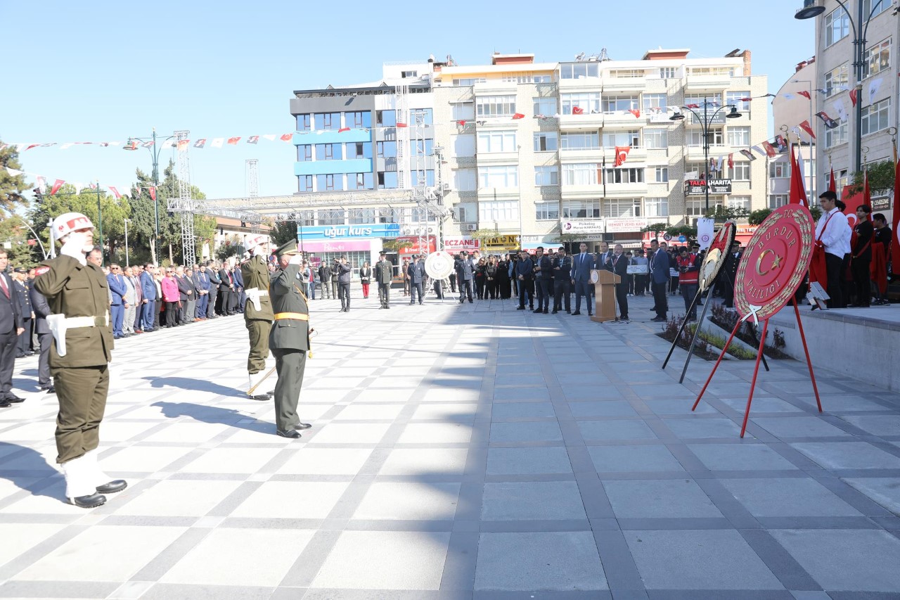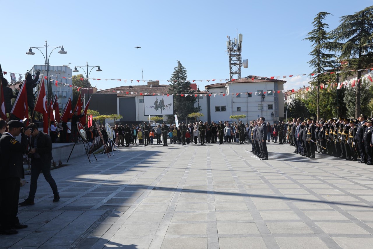 Cumhuriyet Meydanı’ndaki çelenk sunma törenine Burdur Valisi Ali Arslantaş, CHP Burdur Milletvekili Mehmet Göker, Garnizon Komutanı Albay Yavuz Çankaya, Belediye Başkanı Ali Orkun Ercengiz, Cumhuriyet Başsavcısı Osman Kara, Baro Başkanı Ramazan Gedik, siyasi parti temsilcileri, askerler ve öğrenciler katıldı. Burdur Valisi Ali Arslantaş, Garnizon Komutanı Albay Yavuz Çankaya ve Belediye Başkanı Ali Orkun Ercengiz tarafından Atatürk Anıtı’na çelenk sunuldu. Törene katılanlar saygı duruşunda bulunup, İstiklal Marşı’nı okudu. Cumhuriyet Bayramı törenleri kapsamında yarın Vali Ali Arslantaş, valilikte tebrikleri kabul edecek. Tören daha sonra Gazi Atatürk Stadyumu’nda devam edecek.