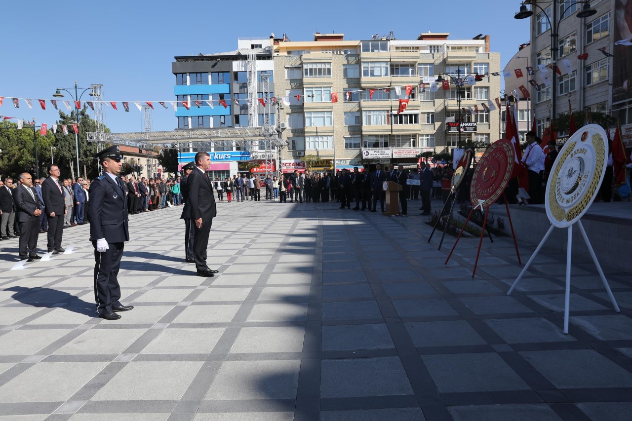 Burdur’da Türkiye Cumhuriyeti’nin kuruluşunun 99’uncu yıl dönümü kutlamaları, Atatürk Anıtı’na çelenk sunma töreniyle başladı.