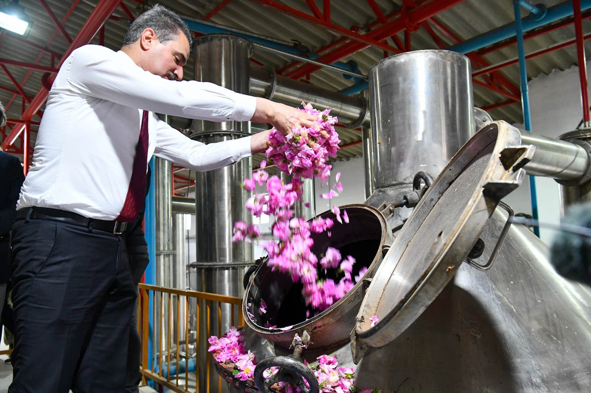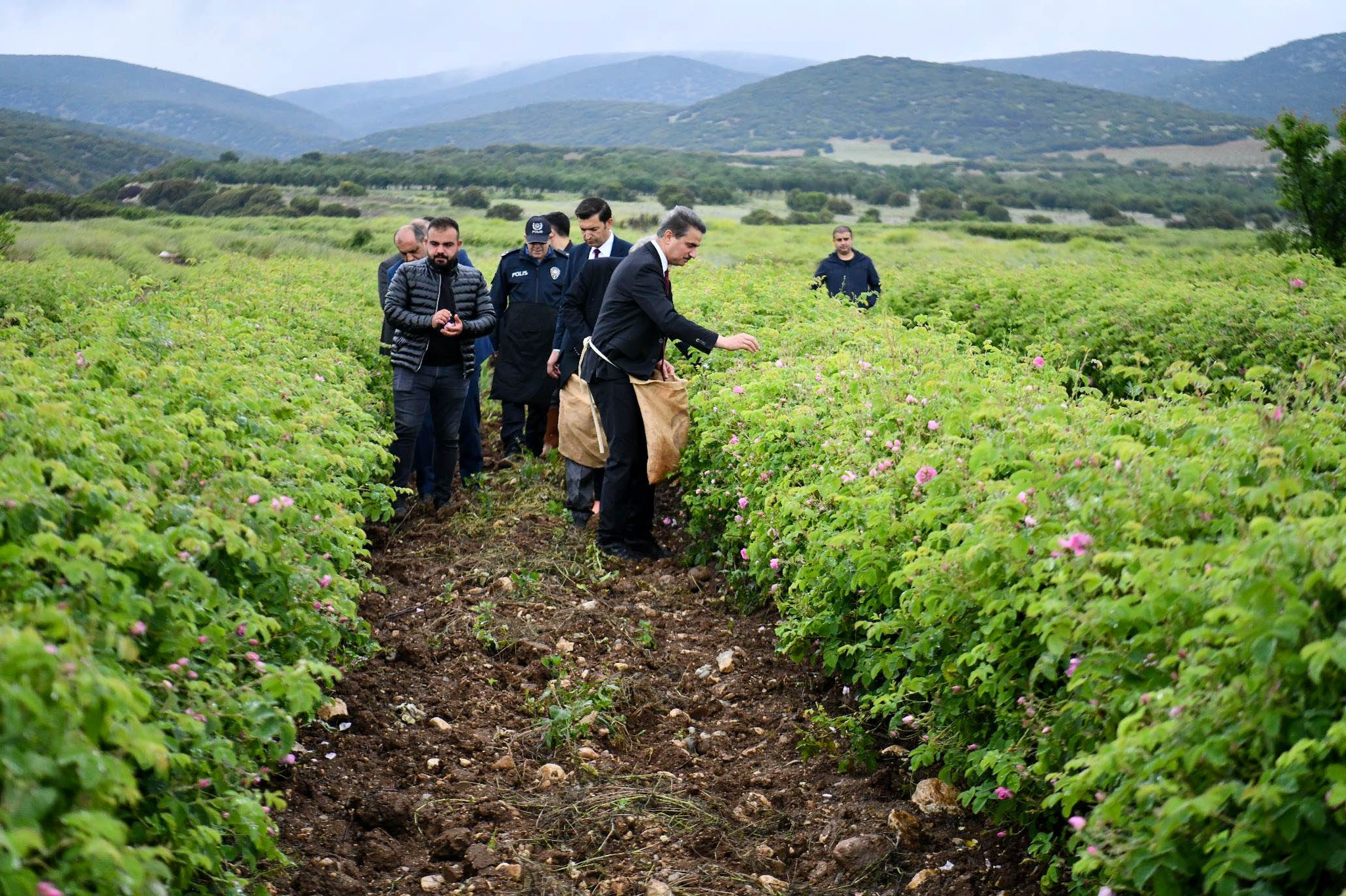 Vali baruş bununda yanında hasat edilen ilk gülleri de gül imbiklerine doldurdu.