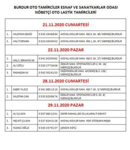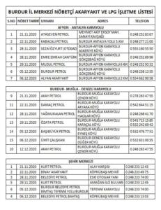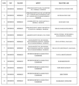 Hafta sonları 10:00 – 20:00 saatleri dışında uygulanacak sokağa çıkma kısıtlaması süresince hizmet verecek Petrol – Otogaz İstasyonları ile Oto Lastik Tamircileri Nöbet Listesi ve şehirlerarası karayolları kenarında bulunan ve şehirlerarası toplu ulaşım veya lojistik amaçlı araçlara hizmet verecek istisna kapsamında yer alan yeme içme tesisleri listesi