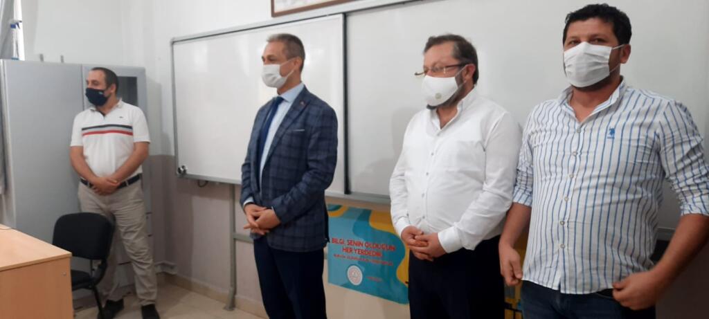 Bucak Hüseyin Türker Ortaokulunda okul banisi Hüseyin TÜRKER’in torunlarının 15 tablet bilgisayar bağışıyla oluşturulan EBA Destek Noktasının açılışı yapıldı. Açılışa Bucak İlçe Milli Eğitim Müdürü Neşet Yazar , Şube Müdürü Hamdi Üzümcü ,Hüseyin Türker ve Barbaros Türker katıldı. Açılışta Avukat Hüseyin Türker, ” Dedemizin bizlere yadigarı olan Hüseyin Türker Ortaokuluna pandemi sürecinde internet veya cihazı olmayan öğrencilerimizin eğitimden yoksun olmamaları amacıyla okul banisinin torunları olarak bizler 15 tablet bilgisayar bağışlayıp okulumuzda EBA Destek Noktasını açmış bulunmaktayız. Her daim maddi-manevi destekçisi ve takipçisi olduğumuz okulumuzun her geçen gün artan başarısından ve veli-öğrenci memnuniyetinden dolayı İlçe Milli Eğitim Müdürümüze , okul idaresi ve öğretmenlerine teşekkür eder , başarılarımızın devamını dilerim” dedi . İlçe Milli Eğitim Müdürü Neşet Yazar; “Bucak’ta halkımız eğitime gereken ciddi önemi vermektedir. Hayırseverlerimizden de bu anlamda büyük destek görmekteyiz. İlçede birçok okul hayırseverler tarafından yaptırılmış ve eğitim sürecinde de desteklenmiştir. Zor bir süreçten geçtiğimiz böylesi bir pandemi döneminde Hüseyin Türker Ortaokuluna 15 tablet bilgisayar bağışıyla EBA Destek Noktasının açılmasına vesile olan TÜRKER ailesine teşekkür eder , sınıfın okulumuza hayırlı olmasını dilerim” diyerek teşekkür plaketini hayırseverlere takdim etti.