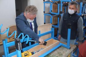 Bucak İlçe Kaymakamı Erol Tanrıkulu, Bucak Ticaret ve Sanayi Odası ve Organize Sanayi Yönetim Kurulu Başkanı Hasan Yalçın Meçikoğlu, İlçe Milli Eğitim Müdürü Neşet Yazar, Bucak Organize Sanayi Müdürlüğünün koordinesinde İlçe Milli Eğitim Müdürlüğü ortaklığı ile yapılan Batı Akdeniz Kalkınma ajansının desteklediği Yenilikçi Ar-Ge Odaklı Endüstriyel Ürün Tasarım Atölyesi Kurulması TR61/19/MESLEK/0033/01 projesi kapsamında Bucak Organize Sanayi Müdürlüğü’nce alınmış olan CNC tezgahlarını ve okulda üretimi yapılan sıraların üretim aşamalarını ,yeni yapılan statik boyahanesini ve sonrasında Metal ve Mobilya atölyelerindeki makine ve teçhizatları yerinde inceledi.