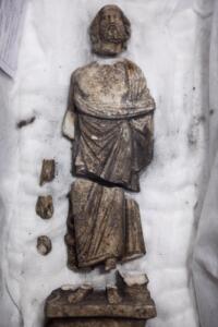 Yangın katmanı içinde bulunan bu heykelcik 7 parça halinde ele geçmiş olup, bulunduğu yangın katmanından ve toprak altında geçirdiği süre boyunca çevresel koşullardan oldukça olumsuz yönde etkilenmiştir. Tüm parçaları mevcut olan heykelciğin genel durumu sağlam olup, eserin restorasyon-konservasyon ve bilimsel yayın çalışmaları devam etmektedir. Roma İmparatorluk Dönemi’ne tarihlenen eser konservasyon çalışmalarının ardından tümlenerek orijinal şekliyle segilenebilir duruma gelecektir.