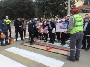 “KIRMIZI ÇİZGİMİZİ ÇEKİYORUZ” YAYAYA ÖNCELİK PROJESİ BAŞLADI