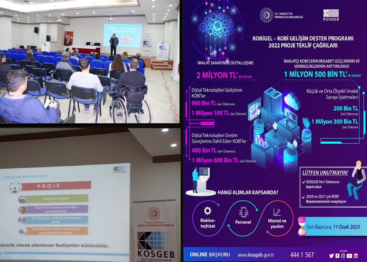 KOSGEB (Küçük ve Orta Ölçekli İşletmeleri Geliştirme ve Destekleme İdaresi Başkanlığı) Burdur İl Müdürlüğü tarafından KOBİGEL- KOBİ Gelişim Destek Programı Çağrısı- 2022-03 programının tanıtımı ve uygulaması BUTSO Konferans Salonunda düzenlenen toplantıyla KOBİ’lere aktarıldı.