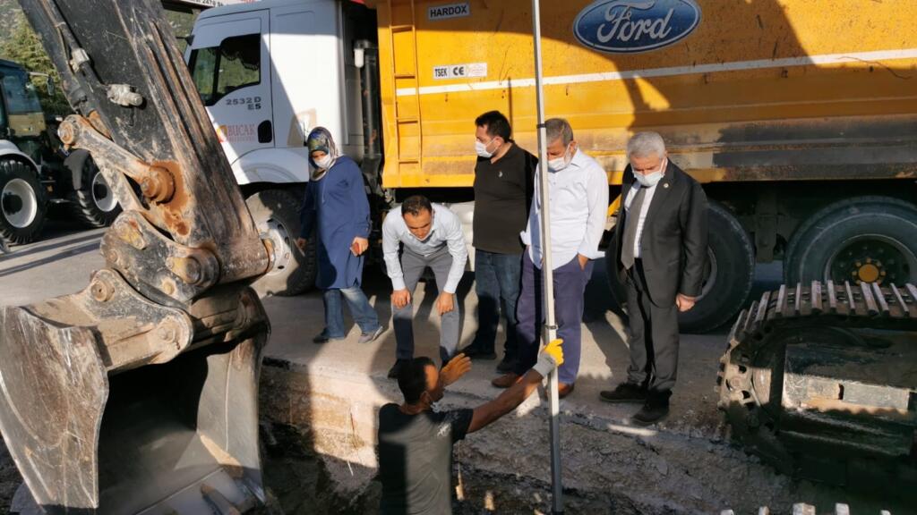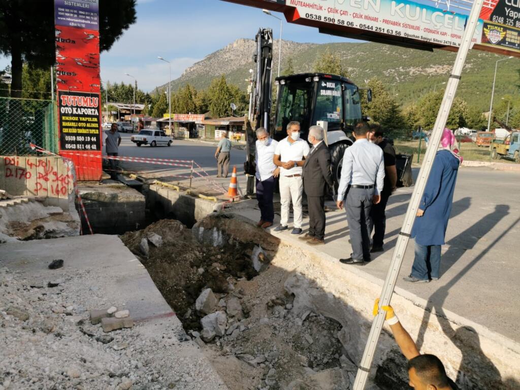 Yeni Sanayi sitesinde yapılan çalışmaları Belediye Meclis Üyeleri Ahmet Gezmez, Osman Tolunay, Ayşegül Altınsoy ve Yasin Çiçek ile birlikte inceleyen Bucak Belediye Başkanı Emrullah Ünal yaptığı açıklamada “ İlçemizde geçtiğimiz aylarda yağan yoğun sağanak yağışlarda istenmeyen durumlar meydana gelmiş ve Yeni Sanayi Sitesindeki esnaflarımız mağdur olmuşlardı. Yaşadığımız afet sonrasında Burdur Valimiz Sayın Ali Arslantaş, Burdur Milletvekillerimiz Sayın Yasin Uğur ve Sayın Bayram Özçelik ve İlçe Kaymakamımız Sayın Erol Tanrıkulu ile birlikte sanayi sitesinde incelemelerde bulunmuştuk. Teknik ekiplerimiz gerekli araştırma fizibilite çalışmalarını yaptıktan sonra, sel baskınına neden olan sorunun çözümü noktasında çalışmalarımız başladı. Sel baskınında su debisini karşılayamayan Sanayi sitesi girişinde bulunan yağmur suyu drenaj hattımızda genişletme ve kapasite arttırma çalışması yapıyoruz. Mevcutta 800’lük olan hattımızı 1,80 çapında 1800’lük hatta çıkarıyoruz. Yaklaşık 60 metre olan korge boru ile yaptığımız drenaj hattı sanayi sitesinden gelen yağmur sularını toplayacak olan hattımız. Aynı zamanda bu hattımızda kod farkını da gideriyoruz. Bu şekilde sorunu çözüme kavuşturacağız. İleride olası bir sel baskınıyla karşılaşmamak için buradan sanayi sitesi esnaflarımıza da önemli bir uyarıda bulunarak, Sanayi içerisinde oluşan hurda malzemelerini drenaj hattı yakınlarına bırakmamalarını istiyoruz. Esnaflarımız hurda malzemelerini ve artıklarını drenaj hattı üzerine ve yakınlarına bıraktıkları zaman hatlarımızda ve hat ızgaralarında tıkanmalara ve sel baskınlarına neden olabiliyor.Drenaj hattının esnaflarımıza hayırlı olmasını diliyorum.” dedi.
