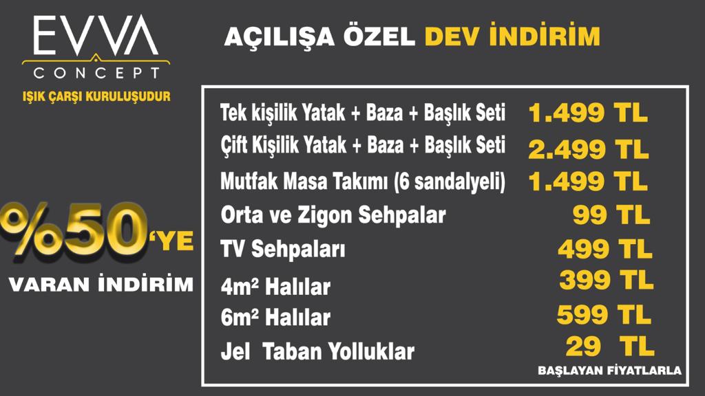 YENİLENEN MAĞAZASI VE YENİLENEN İSMİYLE IŞIK ÇARŞI-EVVA CONSEPT’TE AÇILIŞA ÖZEL DEV İNDİRİMLER..!!